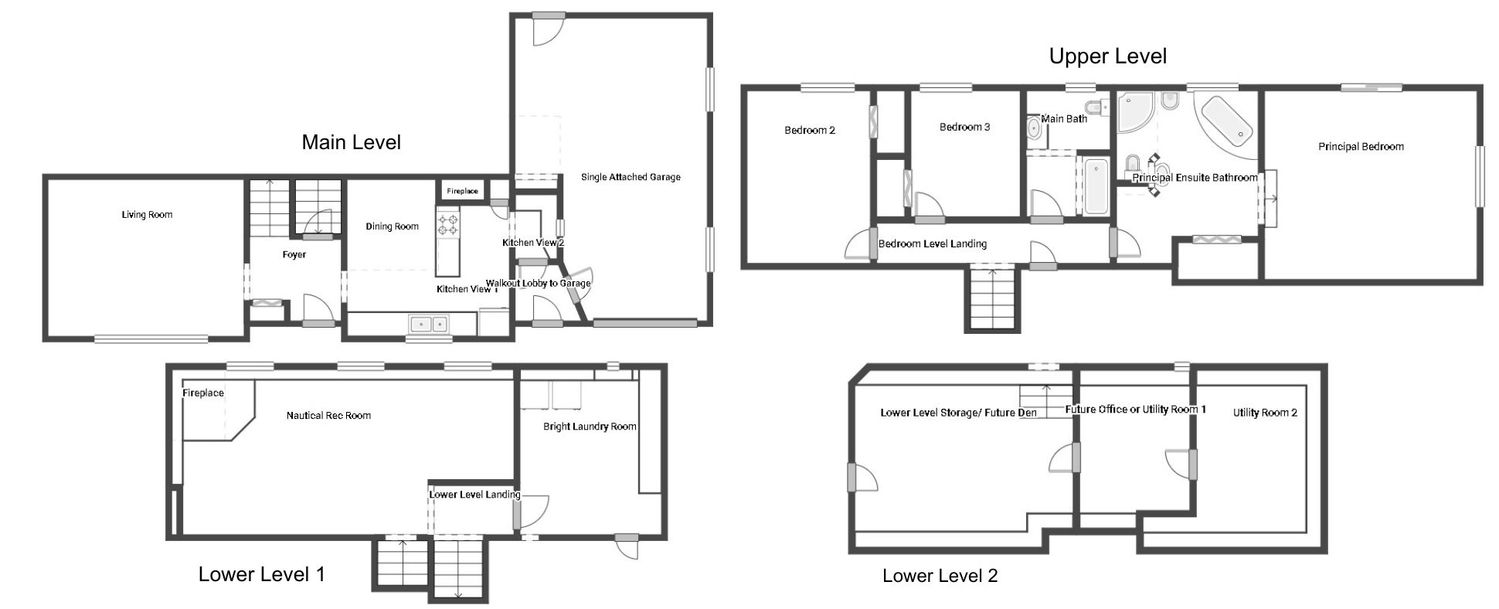 The community of Lakeview is one of Halifax's best-kept secrets, and this larger-than-it-looks home is tucked away at the end of a quiet street on a large lot with city water, overlooking Rocky Lake. Park in the large multi-car driveway, and take in the beautiful front yard, complete with lake view front deck and stone patio. Inside, this Backsplit truly offers more than you expect, including the main floor chef's kitchen w/ pantry & dining area plus large, bright living room. Upstairs has 3 large BRs & 2 full baths including the huge Primary BR with luxurious 5pc ensuite bath and its own private deck on the rear overlooking the back yard. Lower level is finished with an awesome nautical-themed Rec Room with boat bar and large laundry room. There are two more storage rooms (future den/office or gym) below this, plus utility spaces. Attached you'll find an extra-large single garage with workshop and storage on the back that walks out to the back yard, which has tons of space for kids/dogs/nature and a 2-Sty outbuilding that has so many possibilities for future development. Quiet street, mature trees, large lot, loads of space- this property has it all. Watch the videos and check out the 360 tour, then send a message for your own private visit.